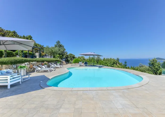 A tengerre néző terasszal rendelkező 4 hálószobás Villa Alessia Marciana Marina 15 perces autóútra fekszik a Marina di Campo repülőtértől. A szálláshely úszómedencét, valamint pezsgőfürdőt kínál, hogy egy fárasztó nap után kikapcsolódhasson.